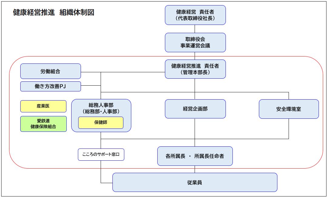 私たちは、社員とその家族の心と身体の健康保持・増進に向けた取り組みを進め、すべての従業員がいきいきと働くことができる職場づくりに努めることをここに宣言します。